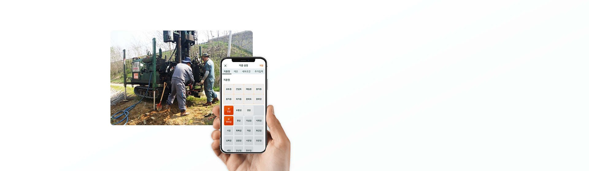 현장에서 웹 기록지 작성과 동시에 시추주상도를 자동으로 생성하고암반 절리, 실내 실험 등 결과는 추가 입력이 가능합니다.